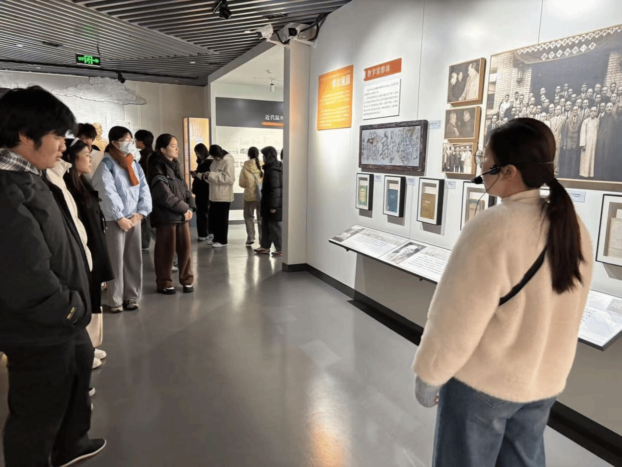 上午9点,朔风渐暖,冬阳正好。全体学生骨干首先前往了世界温州人博物馆,在展品与史料中追溯温州人“敢闯敢试、抱团协作”的精神内核。步入馆内,“弄潮儿——走向世界的温州人”主题展陈首先将众人的目光引向温州的地理与人文情怀。“七山二水一分田”的环境,孕育出温州人“面朝大海、开疆拓土”的生存智慧,而“经世致用、重商精工”的理念,更成为刻入血脉的精神内涵。