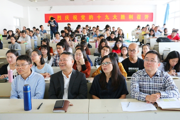为了深入贯彻落实党的十九大会议精神,全面提高我院学生政治理论素质,2017年10月17日上午,我院于人文楼302室开展了十九大开幕式观看学习活动,师生们踊跃参加,积极学习精神。我院院长蔡贻象、党总支书记吴静、党总支副书记朱启鑫、学生科副科长刘纪峰、郑春生教授、黄涛教授、李包靖副教授、徐华柄老师等参加本次开幕式的观看。