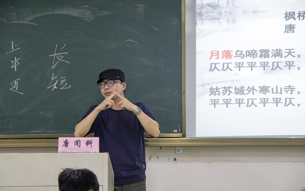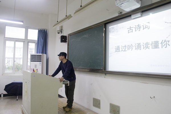 2017年11月29日14:00,我院邀请了温州市文化馆非遗中心的唐闻科老师在人文楼206教室举办了一场以“古诗词,通过吟诵读懂你”为主题的古诗词吟诵专题讲座,带同学们一道体验古诗词的吟诵之美。