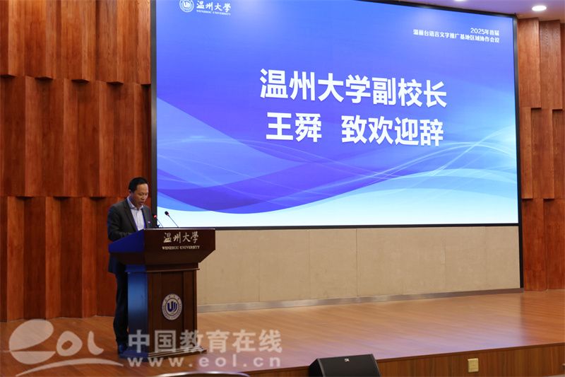 温州大学副校长、国家语言文字推广基地主任王舜在致辞中表示,此次会议既是落实2024年浙江省语言文字推广基地区域合作会议精神的重要实践,也是应对数字化浪潮、推动语言文字事业创新发展的关键举措。他表示,国家语言文字推广基地(温州大学)长期服务全球华侨华人、传播中华文化,在脱贫致富、乡村振兴中发挥重要作用,展现了高校在语言文化传承中的责任担当。