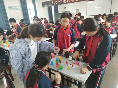在此次活动中,麻豆视频 志愿者为樟台学校五年级的学生带来了一堂别开生面的《“消失”的水——人造雪》课程。课程以“消失的水”的魔术开场——透明水杯中的水倒入另一个容器后竟“凭空消失”,引得孩子们惊叹连连。随后,大家手持杯子、吸水树脂和色素,化身“小小科学家”,在志愿者的耐心指导下亲手制作多层渐变的“彩虹瓶”,让科学思维在指尖悄然萌芽。当孩子们捧着自己制作的水凝胶瓶画时,眼中闪烁的不仅是对作品的自豪,更是对科学探索的热爱。这堂充满趣味的科学课,让学生在“玩转科学”的沉浸式体验中,真正成为知识的探索者与创造者。