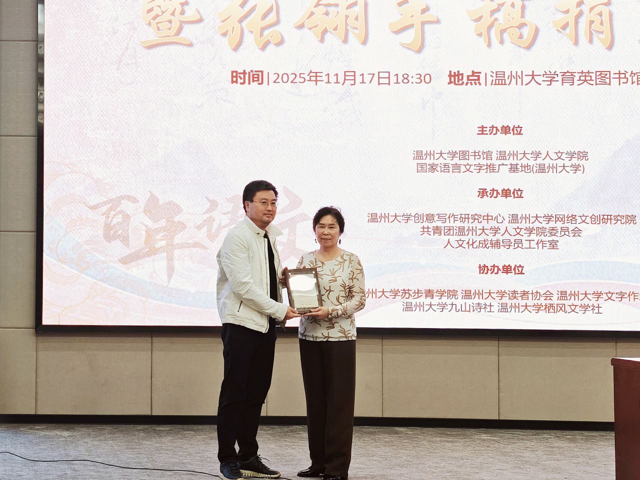 深秋的温州大学校园里,文学的气息格外浓郁。11月17日晚,育英图书馆学术报告厅内,温州大学第七届文学周开幕式暨张翎手稿捐赠仪式在此举行。这是一场关于文学传承的仪式,更是一次精神与情感的相聚。