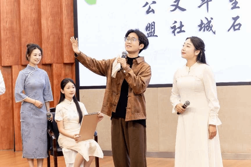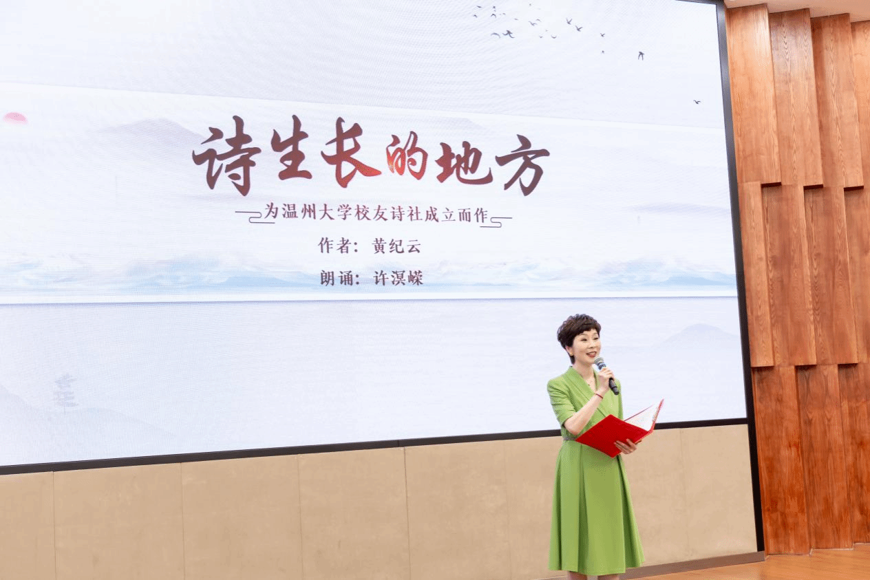 温州大学党委副书记庄兴忠讲话,他指出,温州大学校友诗社的成立是对温州“山水诗发源地”文脉的赓续,更是校友工作的创新探索。他提出三重愿景,诗社应成为“情感的归舟”“文化的薪火”“育人的新篇”,并期待以诗歌记录时代脉搏、传递人文温度、架设联结世界的桥梁,让温大声音与中国故事远播重洋。