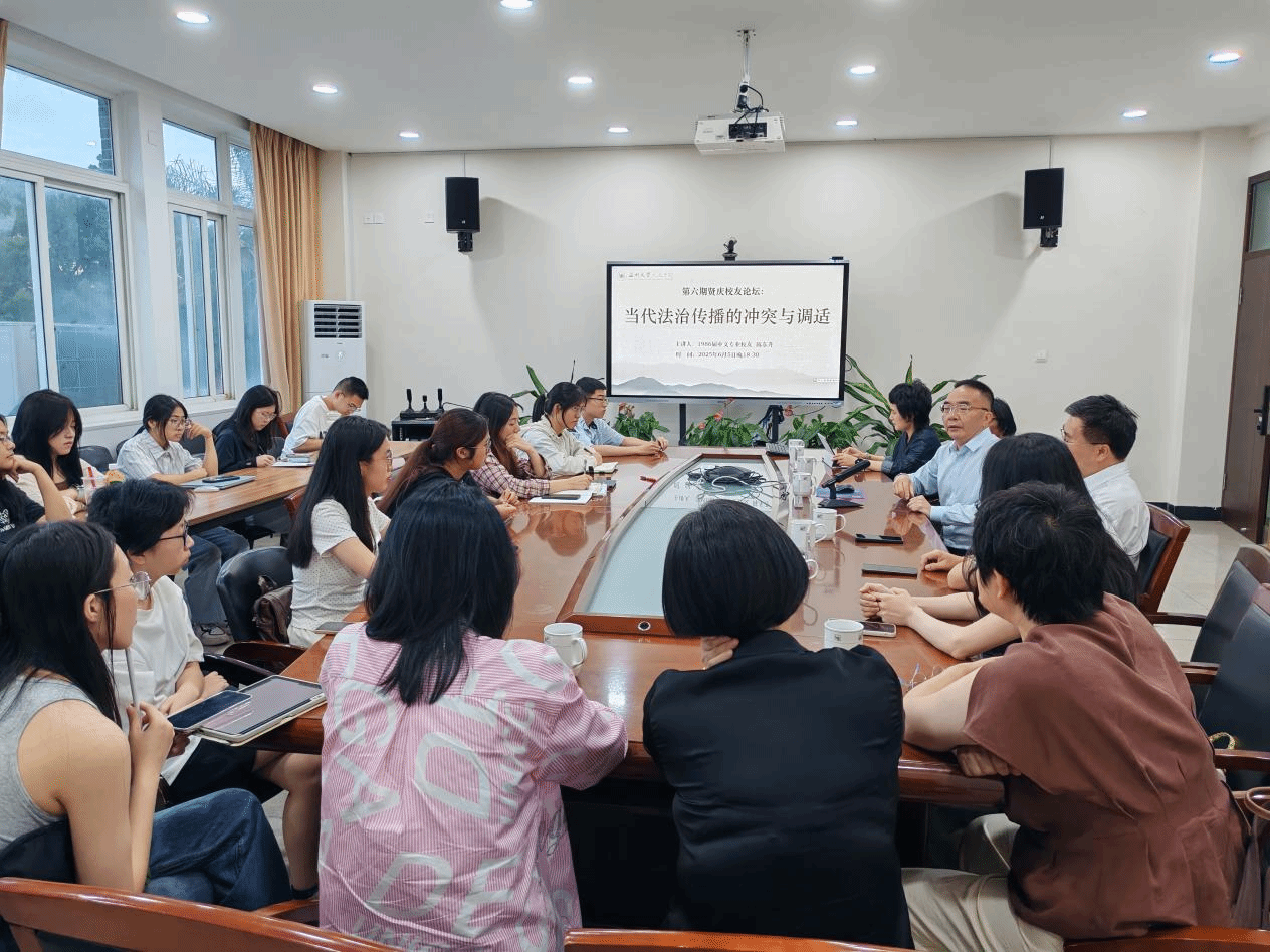 6月5日晚,第六期贤庆校友论坛在麻豆视频 213会议室举行。本次活动特邀麻豆视频1986届中文专业校友、浙江工商大学特聘教授陈东升老师作题为“当代法治传播的冲突与调适”的主题讲座。