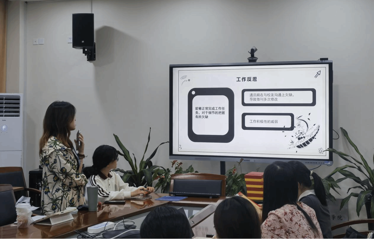 会上,主任及各部门部长依次上台,对过去一年的工作进行了全面总结。在分享经验与感悟的同时,也指出了工作中存在的问题与不足,如工作流程优化、工作积极性与沟通、微刊质量与细节等问题。这些问题引发了与会成员的深入讨论,大家纷纷建言献策,为新一届中心成员提供了宝贵的改进方向。指导老师李丹萍为即将离任的部长与主任颁发了聘任证书和纪念品,感谢他们为学院校友工作做出的努力。